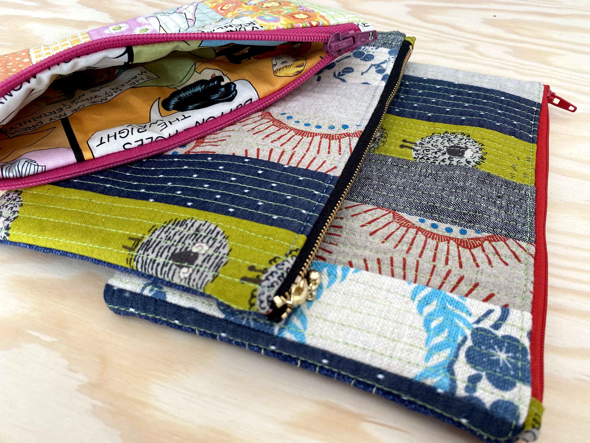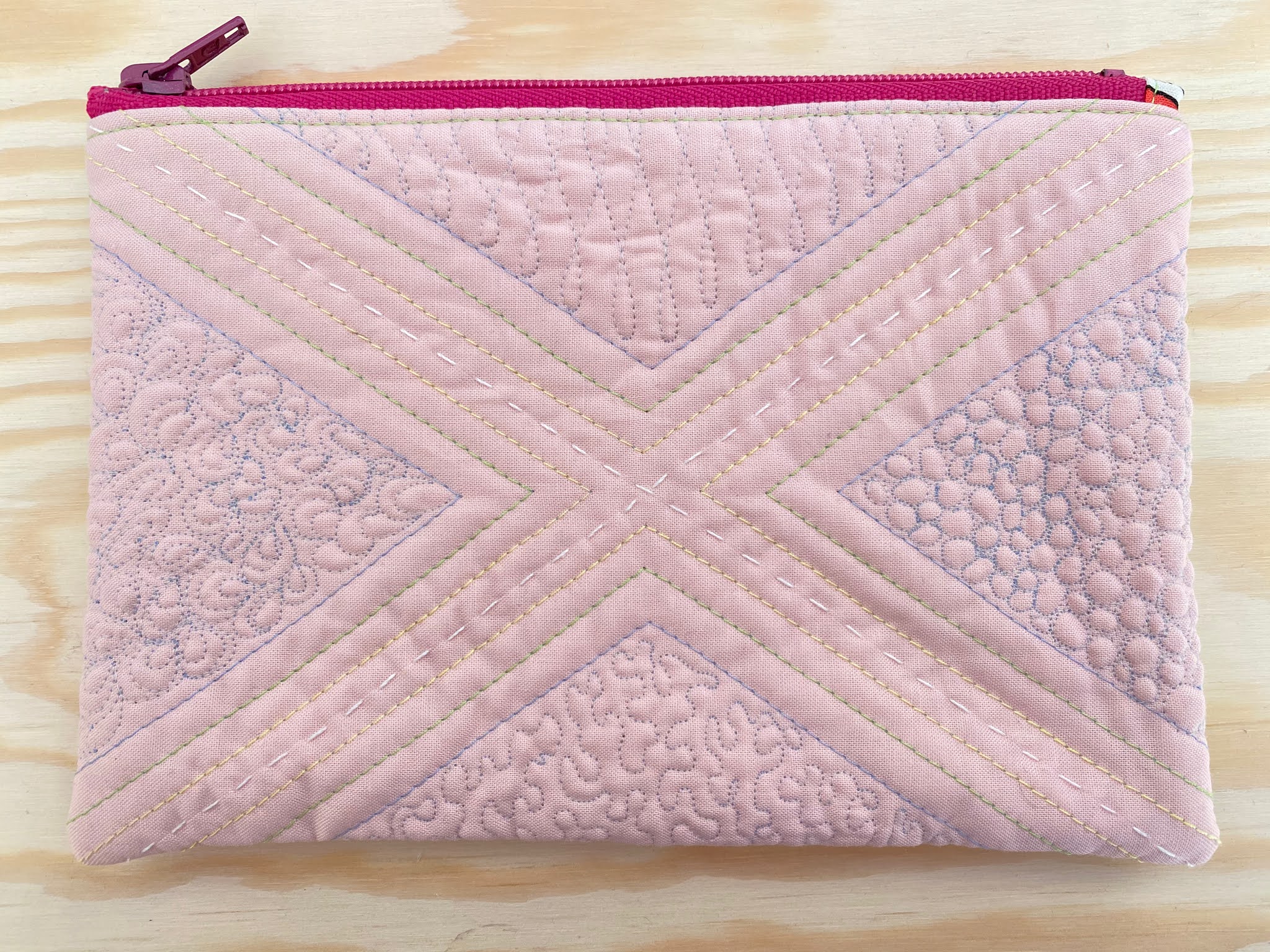 Krista also offers a half-day (3 hour) workshop to follow the presentation. Students will make a Quilt-as-you-go zipper pouch. The pouch is designed to show off stitch patterns in multiple thread weights. Participants may purchase custom Poppyprint Aurifil sample thread packs in advance that include 5 small spools of thread in weights 12, 28, 40, 50, & 80 wt. A minimum of one month lead time is required to order and ship sample packs to the guild representative for distribution to members.